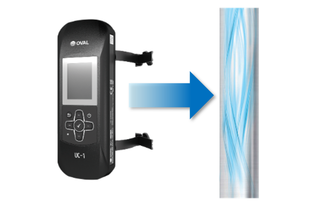 액체식 전지용 초음파 유량계로, 배관을 절단하거나 배선 공사 없이 손으로 조이는 수지 밴드만으로 간편하게 외부 탈부착이 가능합니다.